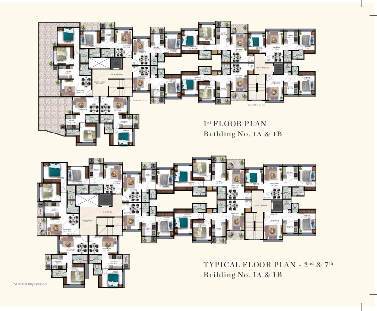 Multiple 1 BHK and 2 BHK units per floor